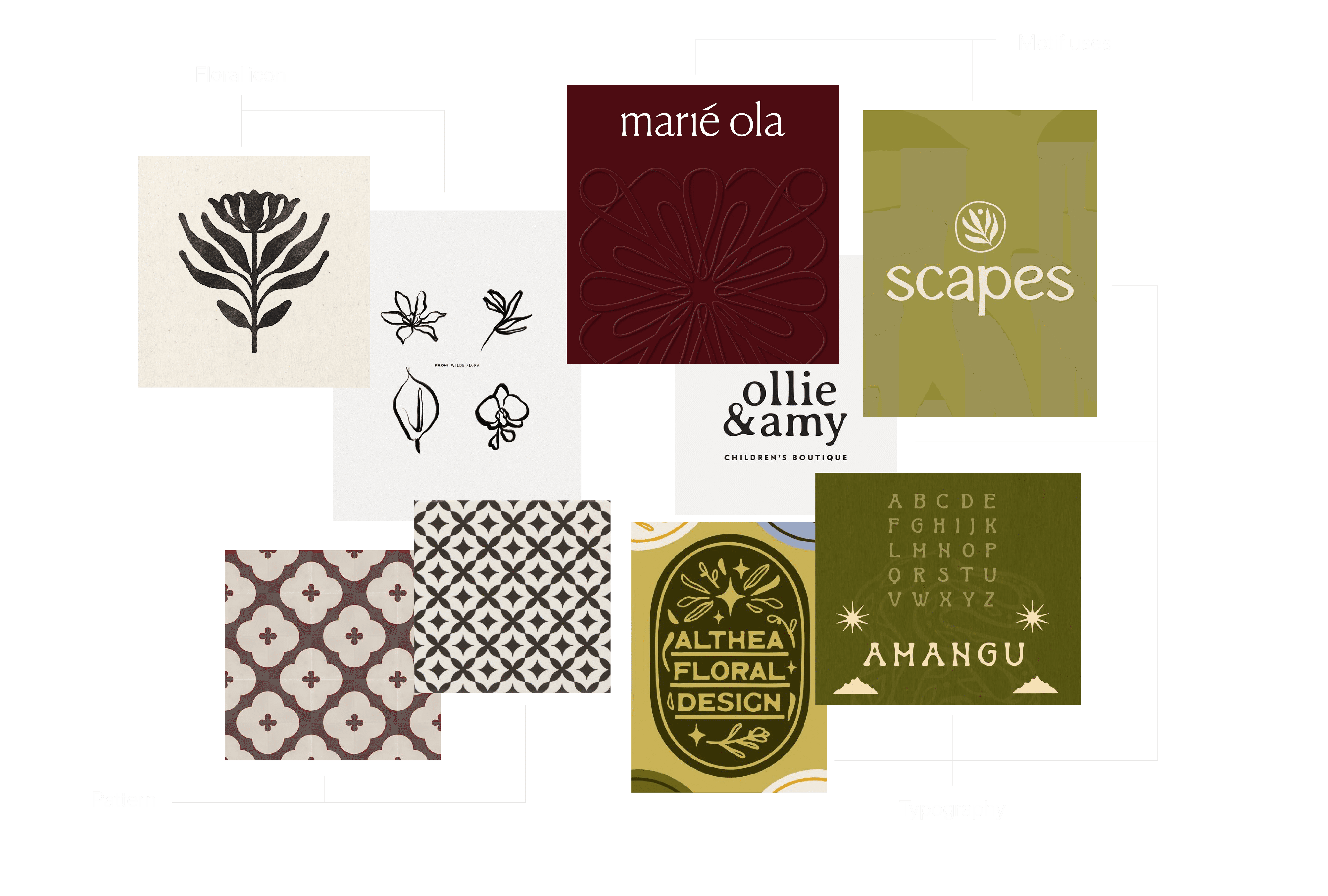 Moha’s visual language is built around patterns derived from its core elements. The floral logomark forms the primary pattern, supported by a subtle secondary texture inspired by the logo’s frame. Organic floral and geometric motifs may also be used, in keeping with the brand’s warmth and refinement.